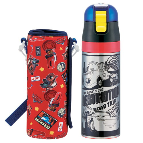 Lohaco 子供用水筒 直飲み ワンプッシュボトル カーズ カバー付き ショルダー付き 保冷 470ml すいとう 保冷専用 ステンレス製 スポーツボトル ダイレクトステンレスボトル 保冷 ベルト付き 子ども用 キャラクター 水筒 マグボトル リビングート ロハコ店