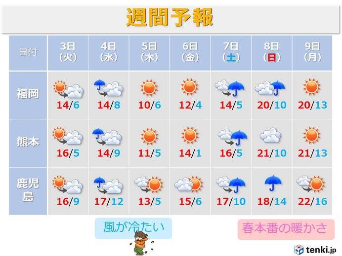 九州 週間 天気が周期変化 気温差が大きい 年3月2日 エキサイトニュース