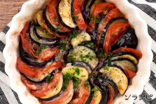 レンジで簡単ナスとトマトのチーズ焼きのレシピ ソラレピ