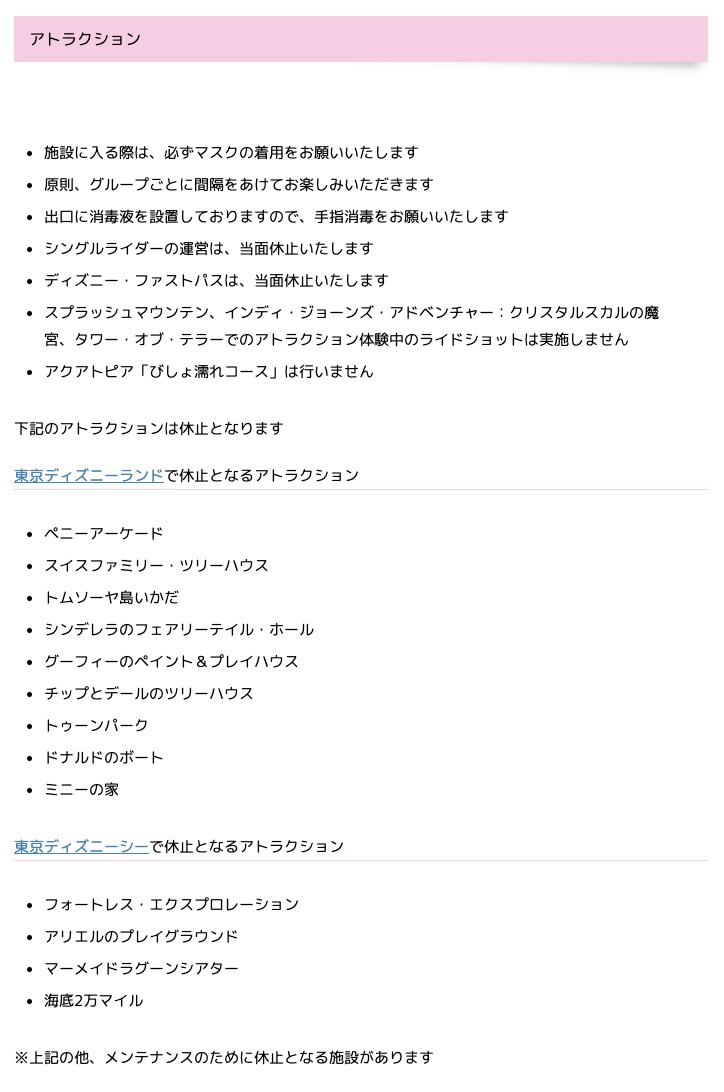 ディズニーリゾート再開でアトラクションの休止状況は パレードやレストランはやってるの ちょこっとノート