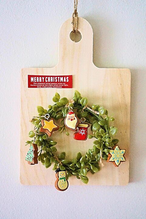 100均のカッティングボードを使用してクリスマスインテリア 暮らしニスタ クリスマスリース ハンドメイド クリスマスインテリア クリスマス オーナメント
